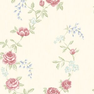 papel de parede, floral em listras nas cores bege, branca e rosa